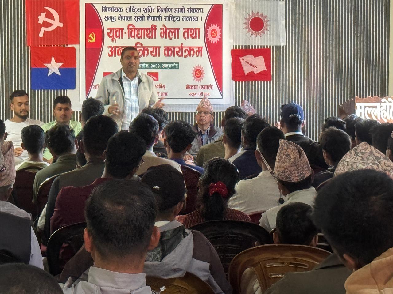 रुकुम पूर्व । नेकपा एमाले रुकुम पूर्वले अनेरास्ववियु र राष्ट्रिय युवा संघ नेपालको व्यवस्थापनामा शनिबार जिल्ला सदरमुकाम रुकुमकोटमा युवा-विद्यार्थी विशेष भेला तथा अन्तरक्रिया कार्यक्रम सम्पन्न