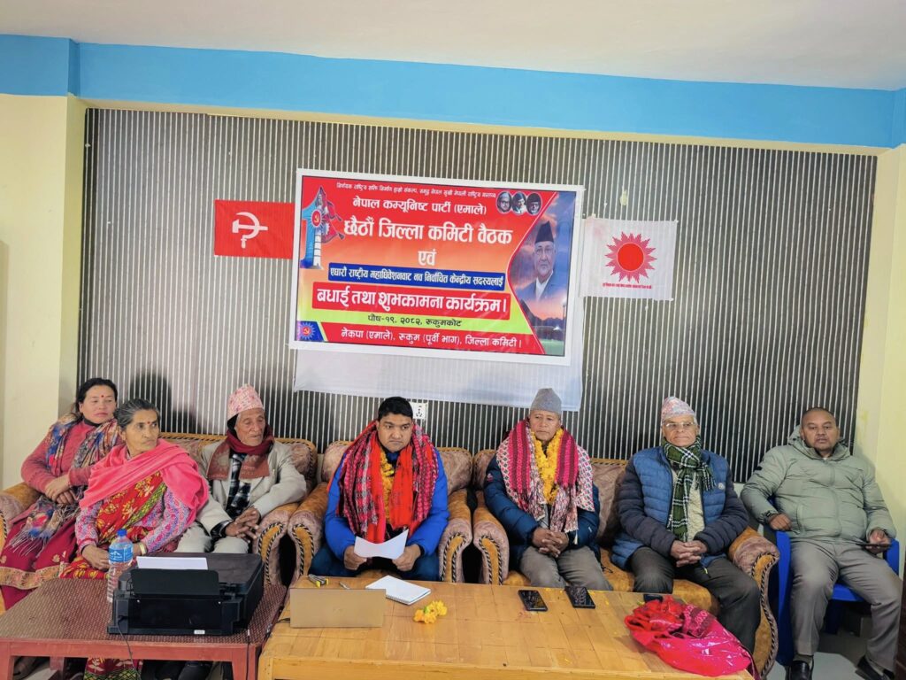रुकुम पूर्व । शनिबार सम्पन्न नेकपा एमाले रुकुम पूर्व जिल्ला कमिटीको सातौं बैठकले कार्यवाहक अध्यक्ष तोक्ने देखी आसन्न निर्वाचनका लागी उम्मेदवार समेत छनौट गरेको छ