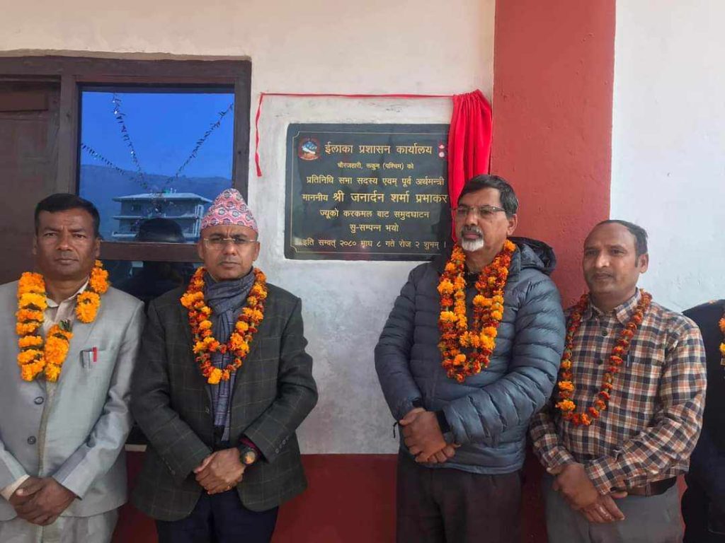 रुकुम पश्चिम । चौरजहारी नगरपालिकामा इलाका प्रशासन कार्यालय उद्घाटन गरिएको छ । आज एक कार्यक्रमका बिच प्रतिनिधि सभा सदस्य जनार्दन शर्माले चौरजहारी-२ मा रहेकाे इलाका..