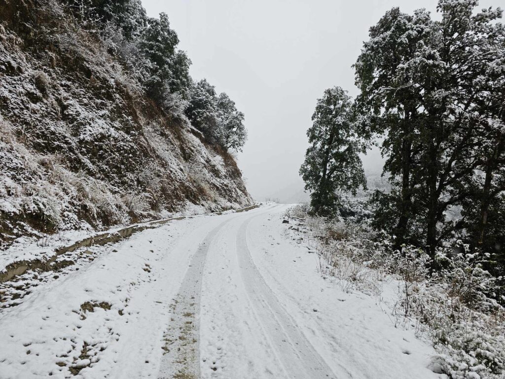 हिमपातले मध्यपहाडी लोकमार्गको आवतजावत अवरुद्ध