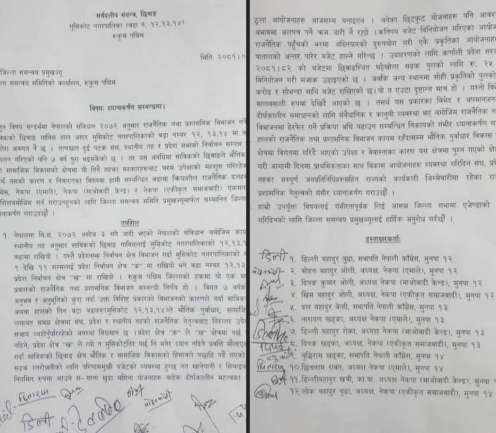 छिबाङ्गी आवाजः सीमाना हेरफेरको मागसहित जिल्ला समन्वयमा ध्यानाकर्षणपत्र