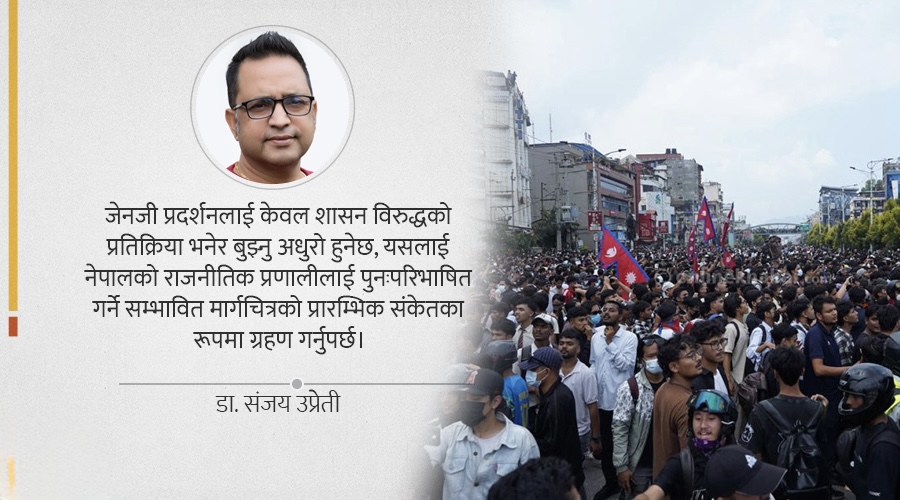 सोझो हिसाबले नभएपछि घोचपेचका रूपमा पनि यस्तो आग्रह गरिरहे । पार्टी, जनसङ्गठनका कार्यकर्ता, जनप्रतिनिधिले समेत सरकारको (खासगरी सञ्चार तथा सूचना प्रविधिमन्त्री र नेतृत्वको) कमजोरी उल्लेख गर्दै जेनजी आन्दोलनलाई महिमामण्डित गरेर समर्थन गरे । सत्ता गठबन्धनकै नेता र प्रतिपक्षका नेताले त आफैँ आयोजक भएजसरी नै समर्थनमा सामाजिक सञ्जालमा स्ट्याटस लेख्ने काम गरे ।